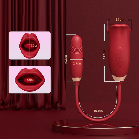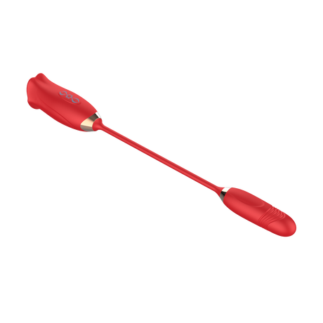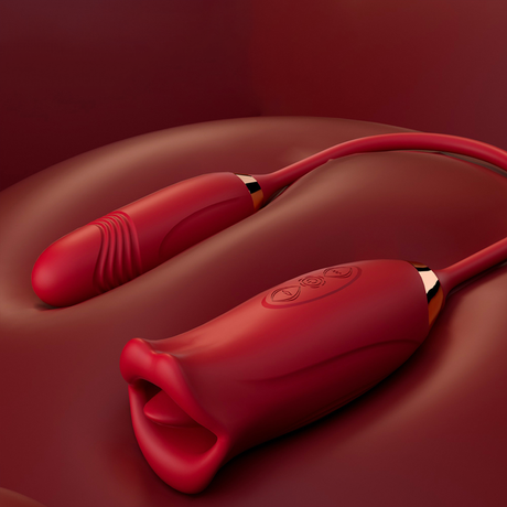 AdultLuxe Rose Tongue Clit & Nipple Tickler with Thrusting Dildo